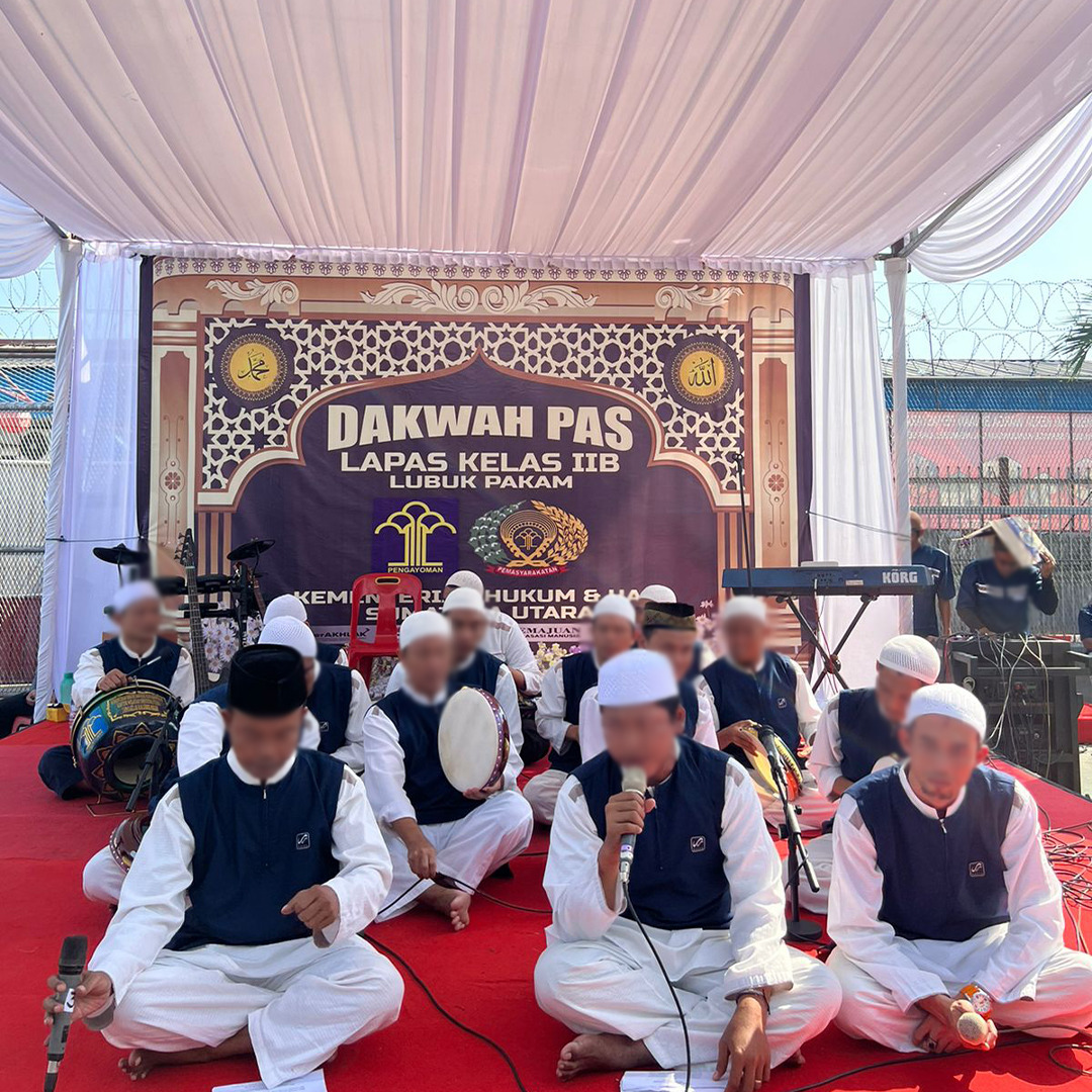 Dalam kegiatan ini juga dimeriahkan dengan penampilan Hadrah Nasyid dan Band Religi Warga Binaan Pemasyarakatan Lapas Lubuk Pakam Kanwil Kemenkumham Sumut yang sangat menghibur bagi jamaah Isra Mi’raj.