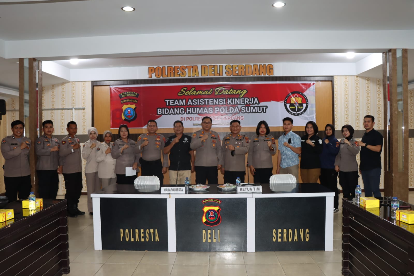 POJOKTIMES.COM | Deli Serdang – Bertempat di Aula Tri Brata Polresta Deli Serdang, Sie Humas Polresta Deli Serdang kedatangan Tim Asistensi Kinerja dari Bid Humas Polda Sumut, Senin (29/05/2023) siang.