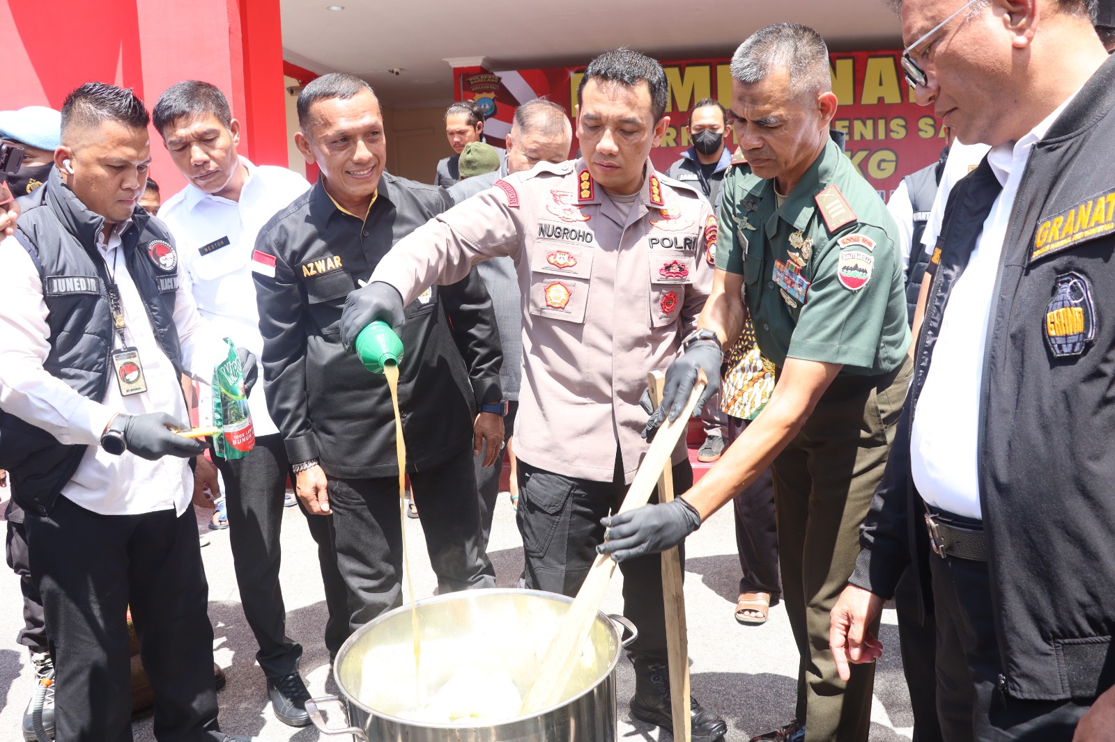 Dalam kegiatan pemusnahan tersebut, Kapolresta Barelang didampingi Kasatresnarkoba Polresta Barelang Kompol Rayendra Arga Prayana, SIK, dan dihadiri oleh Kapolresta Barelang Kombes Pol Nugroho Tri N, SH, SIK, MH, Kasat Resnarkoba Polresta Barelang Kompol Rayendra Arga Prayana, S.I.K., KA BNN Kota Batam AKBP Nestor N Simanihuruk SIK MH, DPRD Kota Batam Lik Khai, Wadandim 0316 Batam Kapten Edi Rasmuji, Wadandandenpom 1/6 Batam Mayor CPM Atep Priyatna, Kajari Batam Eko, Ketua Pengadilan Negeri Kota Batam, Danyon Marinir Letda Samidi, MUI Kota Batam, Kepala Bakamla Kota Batam, Badan POM Kota Batam, Ketua NU Kota Batam, Ketua DPD Granat Kepri, Ketua FKUB Kota Batam.