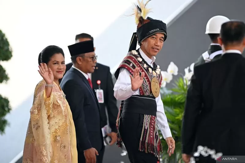POJOKTIMES.COM | Jakarta – Presiden Joko Widodo (Jokowi) menghadiri sidang tahunan MPR RI di Kompleks Parlemen, Senayan, Jakarta, Rabu (18/6). Pesiden Jokowi bersama Ibu Negara Iriana Joko Widodo terlihat mengenakan baju adat daerah Tanimbar, Maluku saat memasuki pelataran gedung kura-kura sekitar pukul 08.35 WIB.