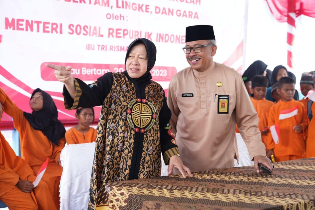 POJOKTIMES.COM | Batam – Wali Kota Batam, Muhammad Rudi diwakili Sekretaris Daerah Kota Batam, Jefridin, M.Pd. menjemput kedatangan Menteri Sosial RI, Tri Rismaharini di Bandara Hang Nadim, Jumat (20/10/2023). Dari Bandara Hang Nadim, rombongan bertolak menuju ke Belakang Padang. Pagi itu, Menteri Risma akan menyerahkan tiga unit kapal angkut untuk transportasi anak sekolah di Pulau Bertam, Pulau Gara dan Pulau Lingka Kecamatan Belakang Padang.