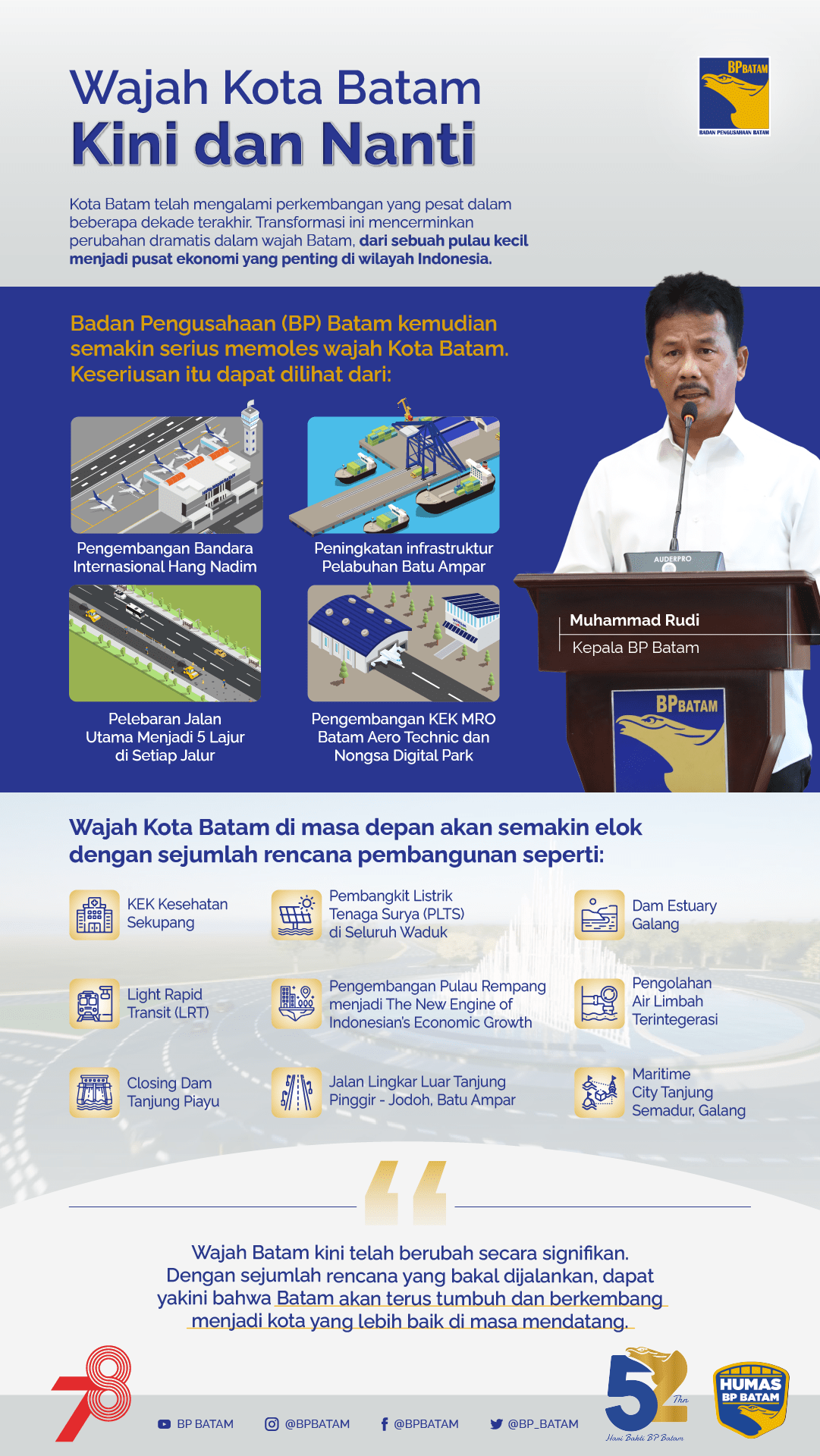 Segala kemajuan dan pengembangan itu pun tak lepas dari peran Kepala BP Batam, Muhammad Rudi, yang berkomitmen memajukan Batam dan menyejahterakan masyarakat di dalamnya.