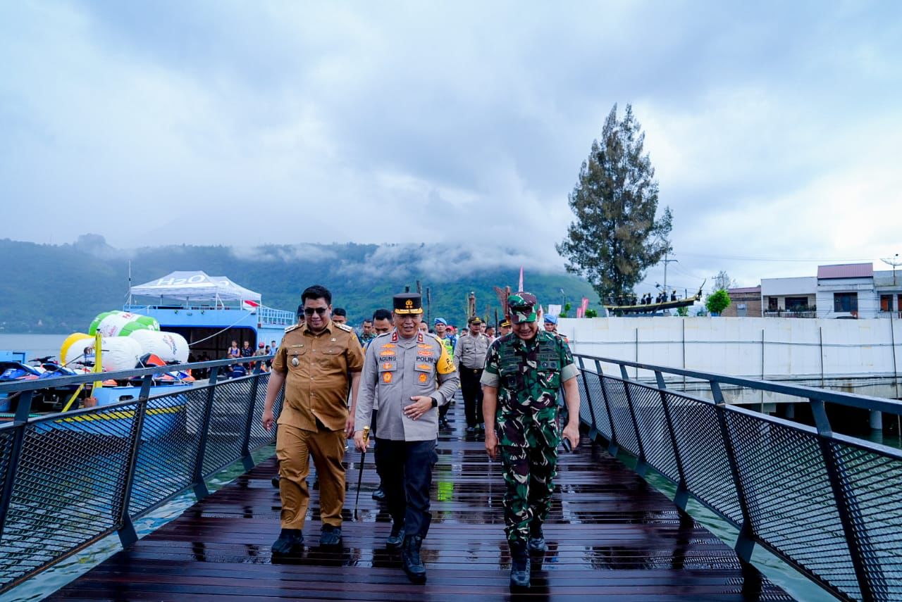 POJOKTIMES.COM | SAMOSIR – Kapolda Sumut, Irjen Pol Agung Setya Imam Effendi, beserta rombongan mengecek kesiapan pengamanan Event Aquabike World Championship 2023 di Water Front City di Kecamatan Pangururan, Kabupaten Samosir, Selasa (21/11).