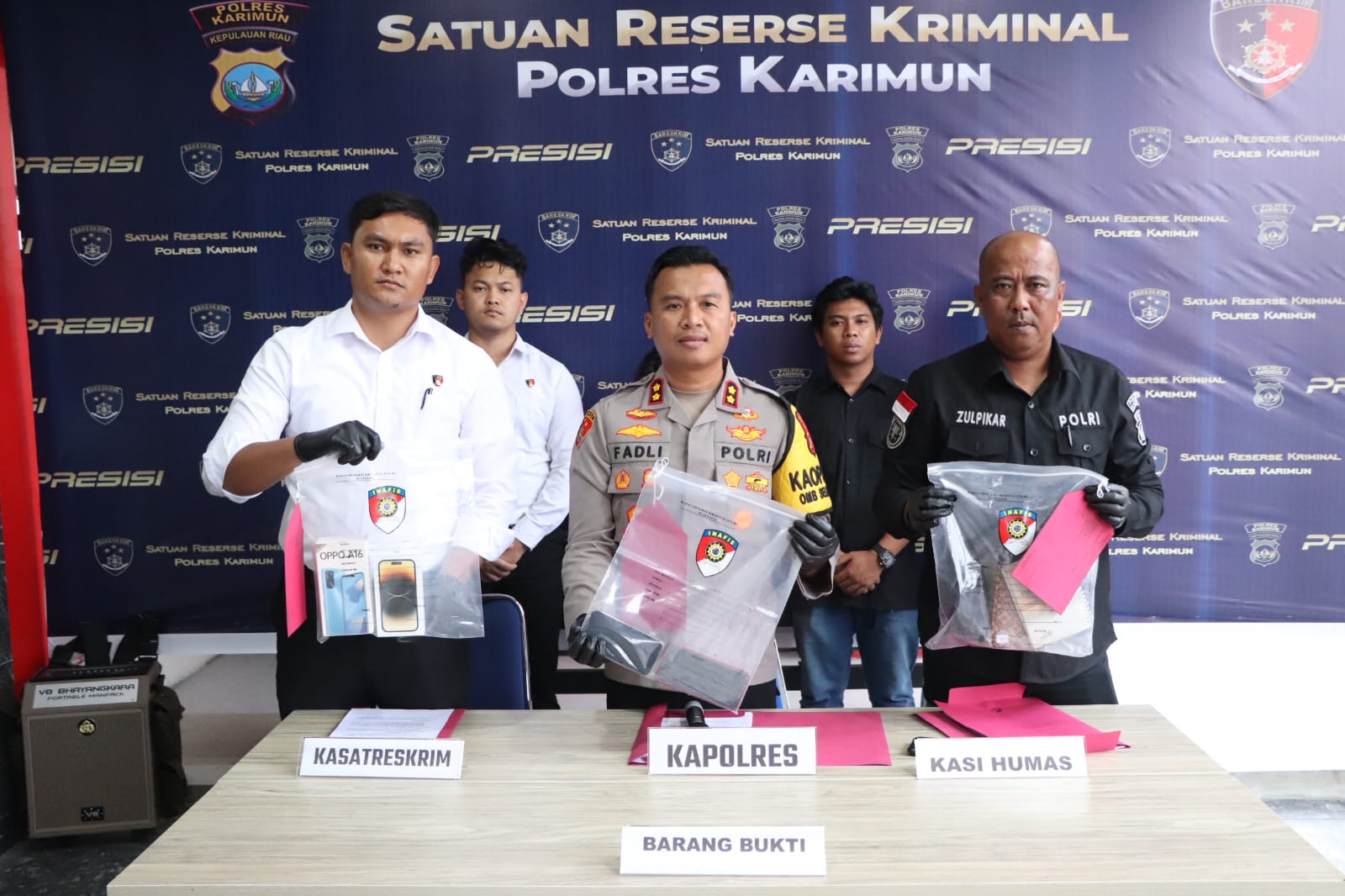 Satreskrim Polres Karimun menggelar press release yang dipimpin langsung Kapolres Karimun AKBP Fadli Agus, S.I.K., M.H. dan didampingi oleh Kasat Reskrim dan Kasi Humas Polres Karimun.