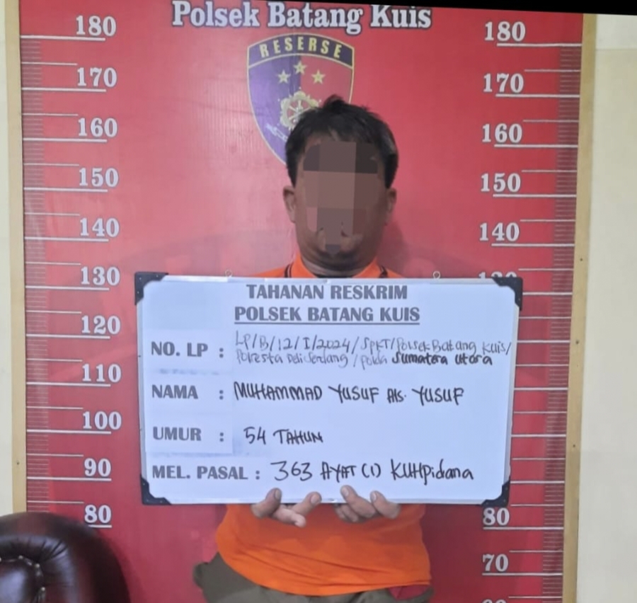 POJOKTIMES.COM | Deli Serdang – Polsek Batang Kuis Polresta Deli Serdang Berhasil amankan satu orang pelaku berinisial MY (55) warga Jl.Wira Bakti Dusun IX Desa Tanjung Sari Kecamatan Batang Kuis Kabupaten Deli Serdang terkait tindak pidana pencurian dengan pemberatan.