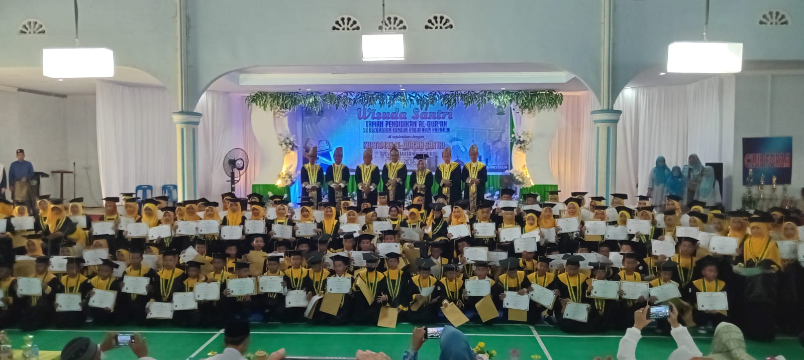 Acara wisuda Santri Taman Pendidikan Al Qur’an di sejalankan dengan khataman Al Qur’an Santri TPQ Kecamatan Kundur berlokasi di Gedung Futsal Forza Jln.Sunaryo KM.04 Kelurahan Tanjung Batu Barat Kecamatan Kundur, Minggu (26/5/2024).