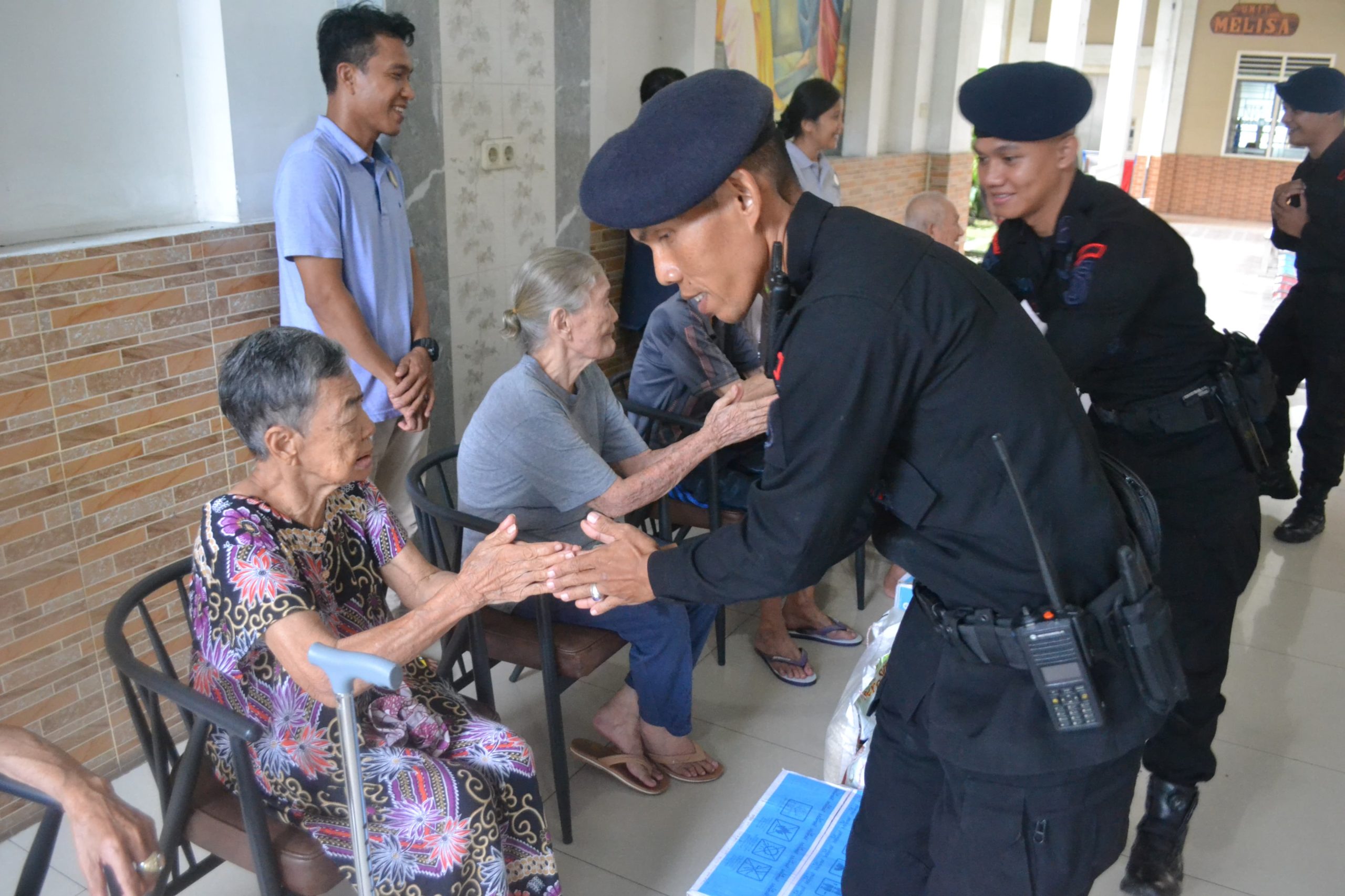 Selain itu, para personil Sat Brimob juga berinteraksi langsung dengan para lansia, memberikan semangat dan hiburan untuk menghibur mereka.