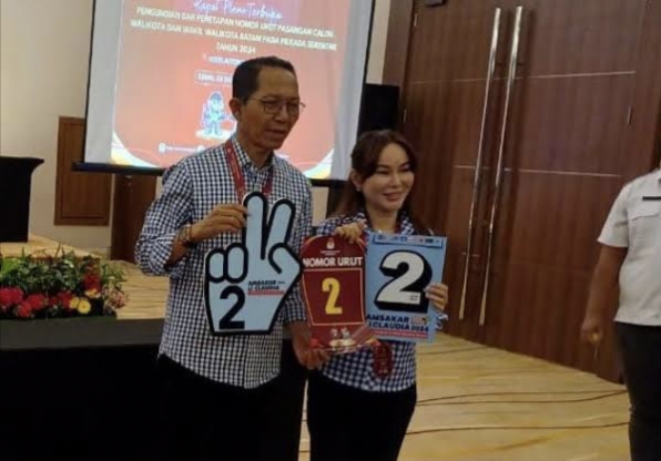 Hal ini diketahui dalam rapat pleno terbuka pengundian dan penetapan nomor urut pasangan calon Wali Kota dan Wakil Wali Kota Batam pada Pilkada Serentak tahun 2024 yang digelar Komisi Pemilihan Umum (KPU) Kota Batam di Hotel Aston, Senin (23/9/2024).