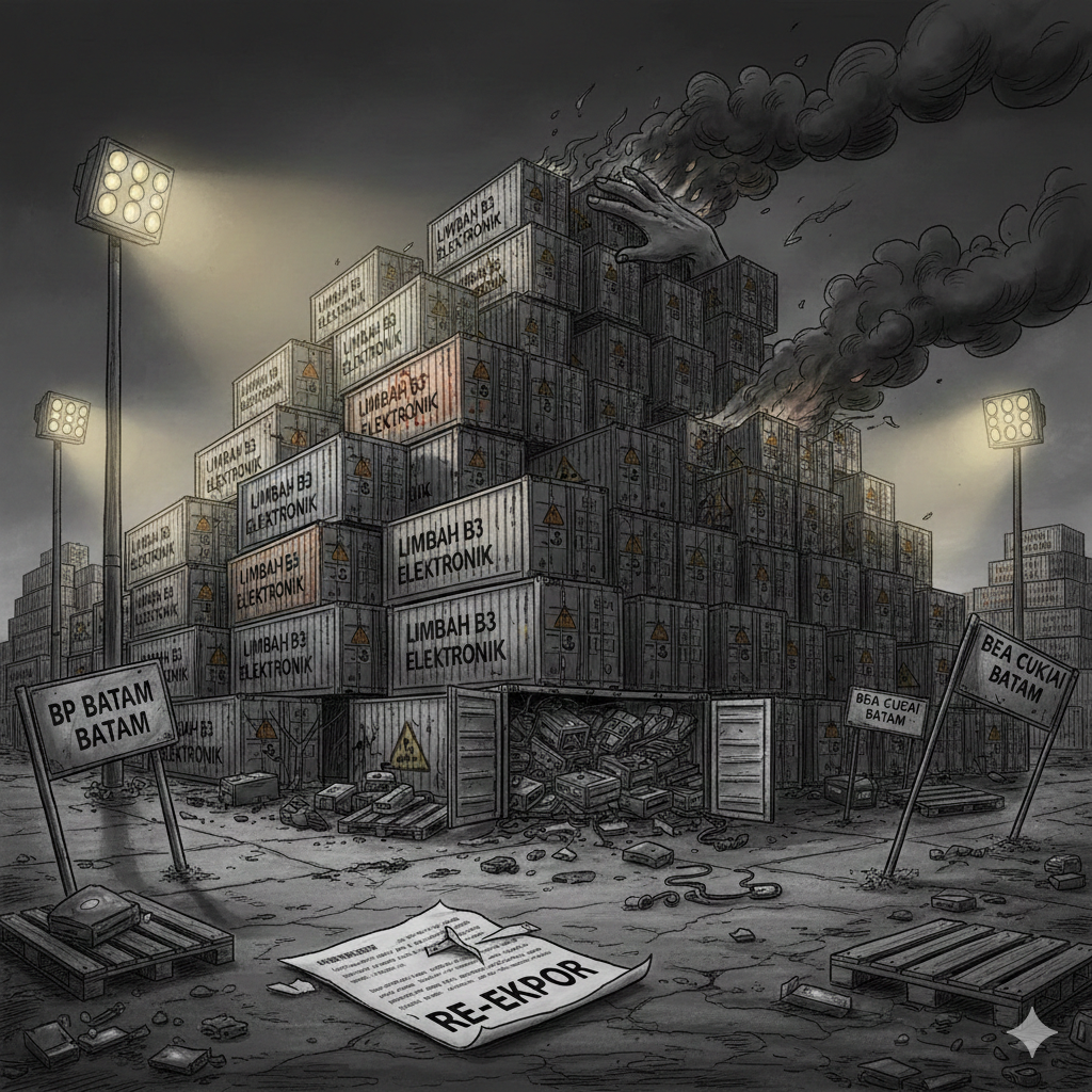 Kontainer limbah elektronik B3 mulai masuk Batam sejak awal Oktober 2025, terus berdatangan di November dan Desember. Kabarnya barang itu sudah menumpuk di pelabuhan dengan jumlah banyak, bahkan untuk pengamanan digunakan aparat.