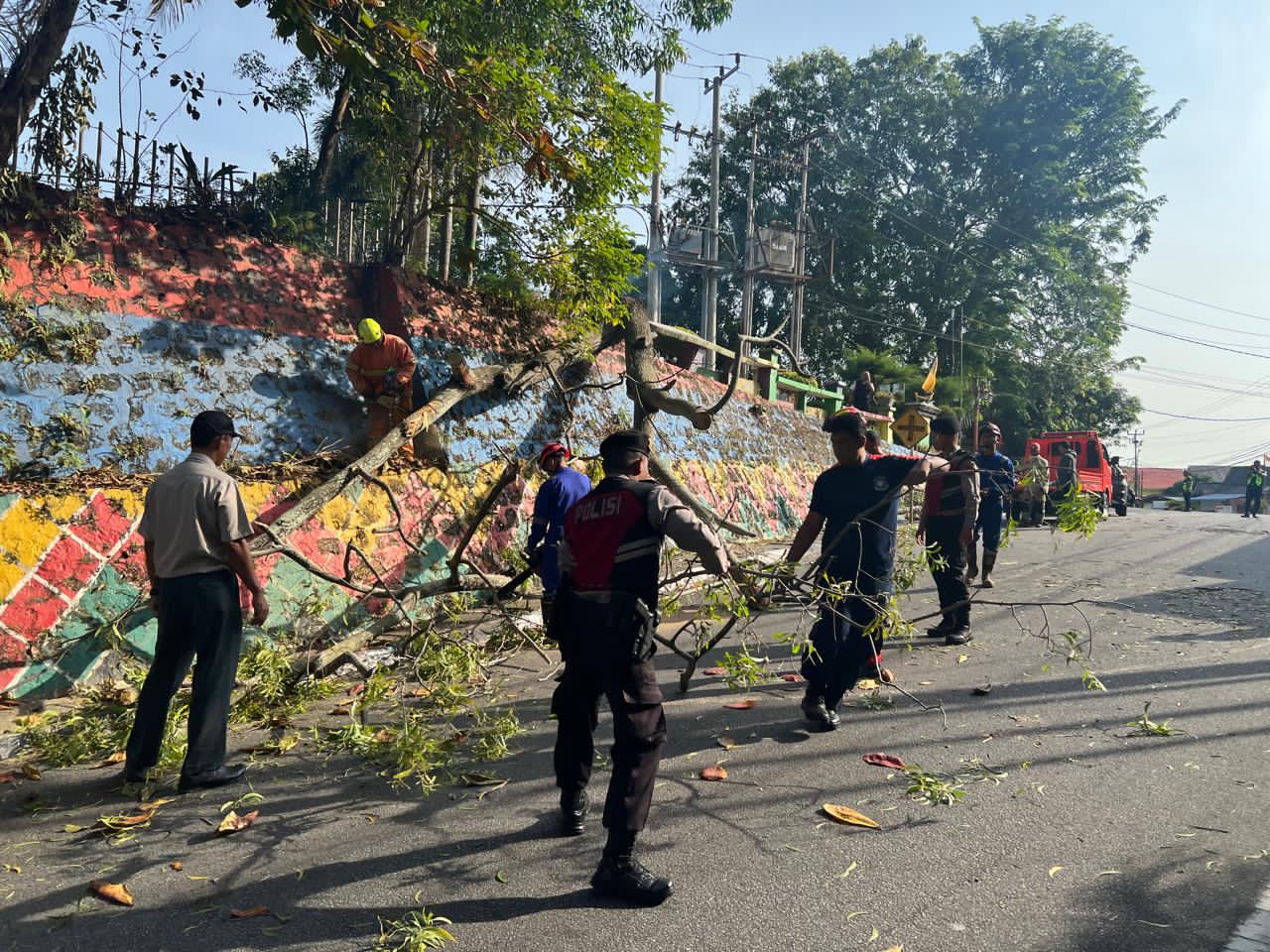 “Personel kami langsung bergerak cepat membantu BPBD dan Damkar mengevakuasi pohon tumbang serta mengamankan arus lalu lintas. Alhamdulillah tidak ada korban jiwa dan situasi dapat segera dikendalikan,” ujarnya.