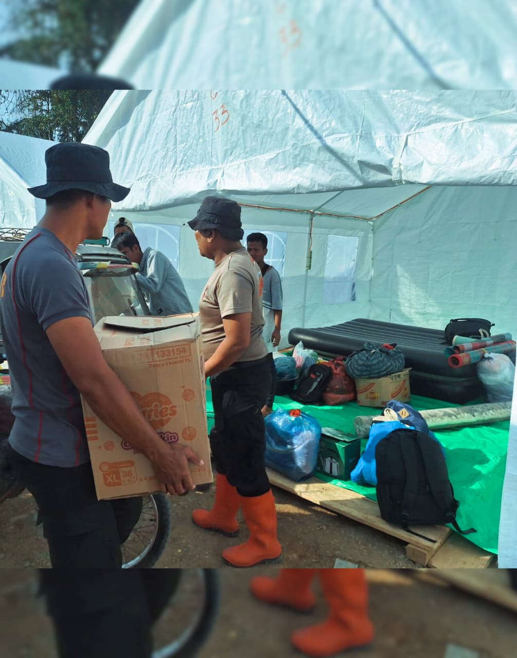 Di Desa Batu Hula, Peleton 1 yang dipimpin oleh Ipda Hotlin Purba, S.H. melaksanakan perbantuan kepada warga yang akan menempati tenda hunian sementara (HUNTARA).