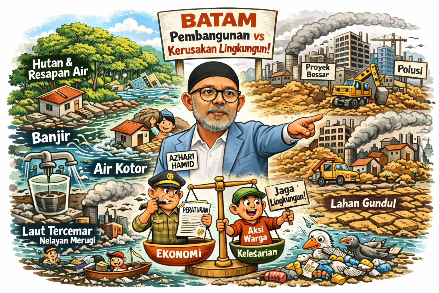 POJOKTIMES.COM | Batam — Isu penyelamatan lingkungan Kota Batam menjadi sorotan dalam sebuah dialog yang membahas dampak pembangunan terhadap keberlanjutan lingkungan. Dalam diskusi tersebut, pemerhati lingkungan Azhari Hamid mengingatkan bahwa pesatnya pembangunan di Batam perlu diimbangi dengan perencanaan yang berwawasan lingkungan agar tidak menimbulkan kerusakan jangka panjang.