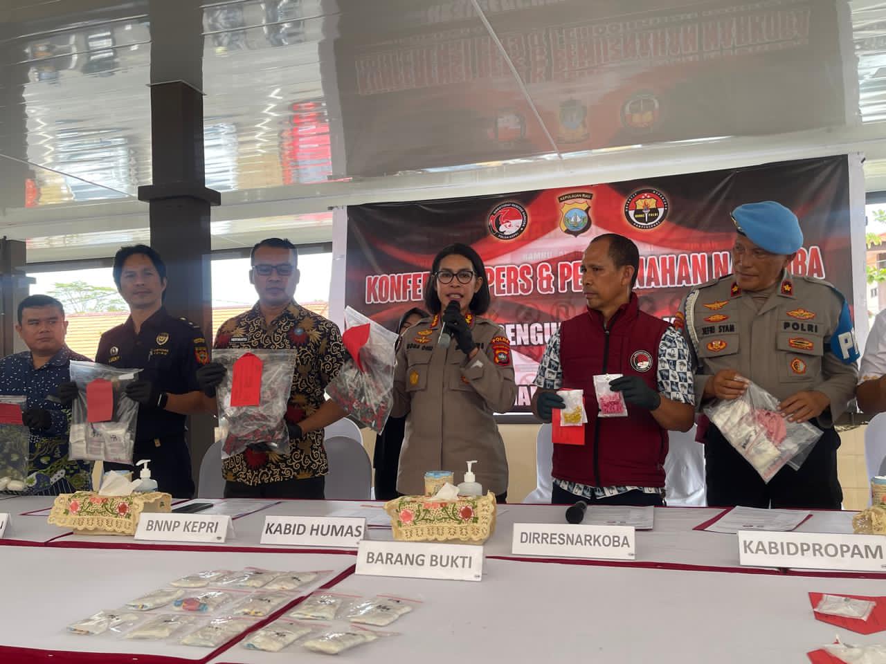 Kabid Humas Polda Kepri Kombes Pol. Dr. Nona Pricillia Ohei menegaskan, seluruh tersangka dijerat Undang-Undang Nomor 35 Tahun 2009 tentang Narkotika dengan ancaman hukuman berat.