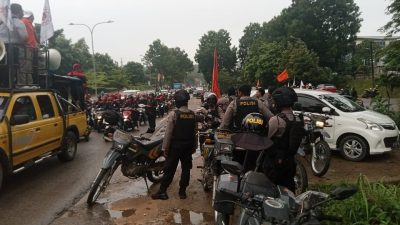 Polsek Sei Beduk Kawal Massa Demo UMK 2023 ke Graha Kepri