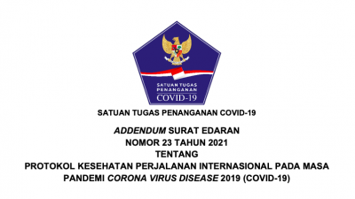 POJOKTIMES.COM | Jakarta – Satuan Tugas (Satgas) Penanganan COVID-19 mengeluarkan Addendum Surat Edaran  (SE) Nomor 23 Tahun…