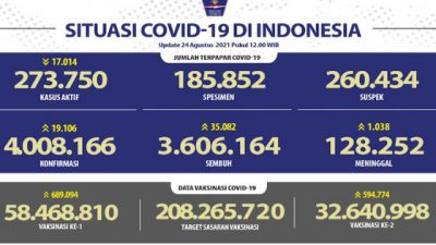POJOKTIMES.COM – Sejak pandemi diumumkan pada Maret 2020 lalu, kini total sudah 4.008.166 orang terinfeksi…