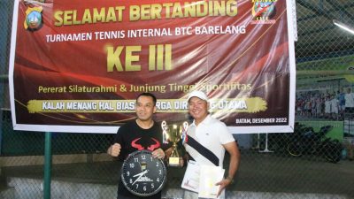 Pasangan Kapolresta Barelang Meraih Juara I Turnamen Tenis Lapangan Internal ITC Barelang ke-3